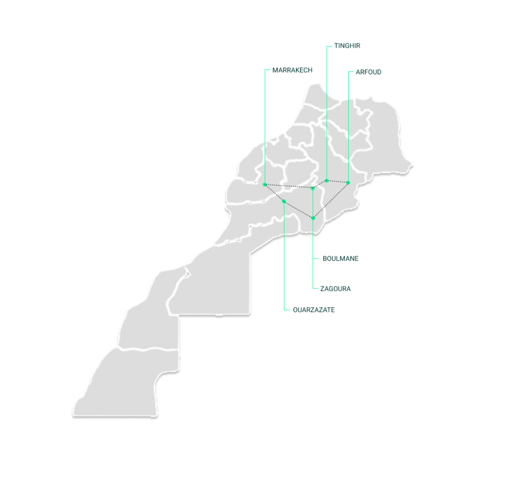 - Road to Ouarzazzate and Tinghir (Visit the famous Gorges of todra.,dades valley).